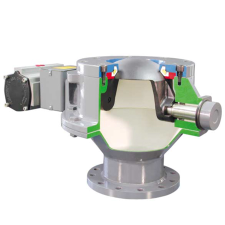 圆顶阀主要由阀体、圆顶阀芯、密封圈、驱动装置等部分组成。其核心在于圆顶阀芯的设计,它可以在阀体内旋转,实现阀门的开启和关闭。当圆顶阀芯旋转至与管道轴线重合时,阀门处于全开状态,物料可以顺畅通过;当圆顶阀芯旋转至与管道轴线垂直时,阀门完全关闭,阻止物料通过。